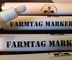 Different types of ear tag, neck tags, taggers and marker which are used to identify livestock.
